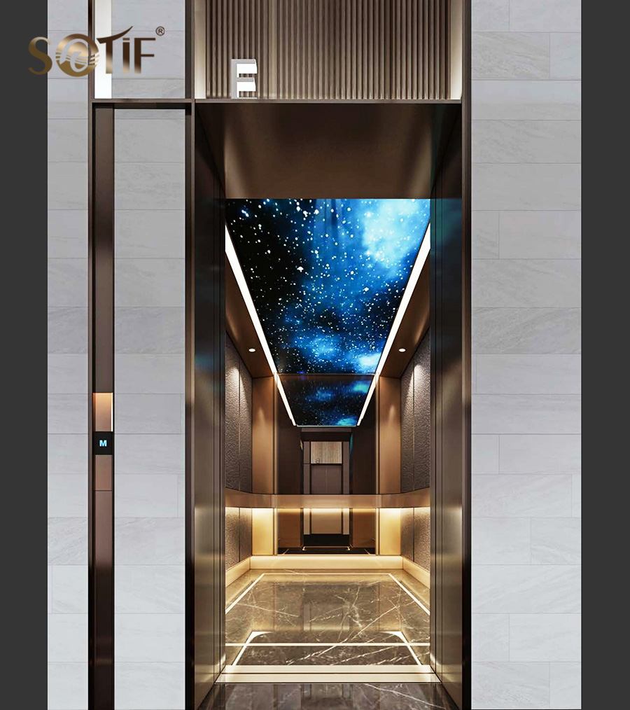 不锈钢电梯装饰与蜂窝板相得益彰,将现代科技与艺术融为一体。电梯门厢以香槟金不锈钢材质打造,散发出温暖而奢华的气息。金属光泽的反射,使整个电梯空间显得明亮通透,仿佛置身于未来的世界。电梯内部的装饰细节精致考究,每个细节都展现着极致的工艺和品质,让人感受到独特的审美享受。